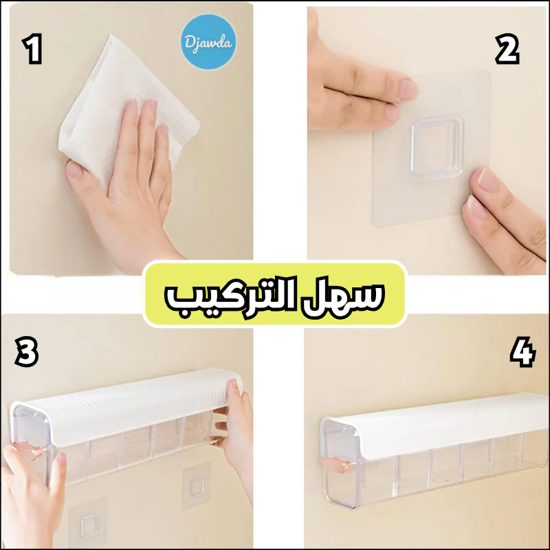 ✅ تركيب "انزع والصق": يجي مع لاصق "نانو" قوي جداً، يشد في الخشب، السيراميك، والحيط بلا ما تحتاجي تثقبيه أو تخربي دهان الدار.