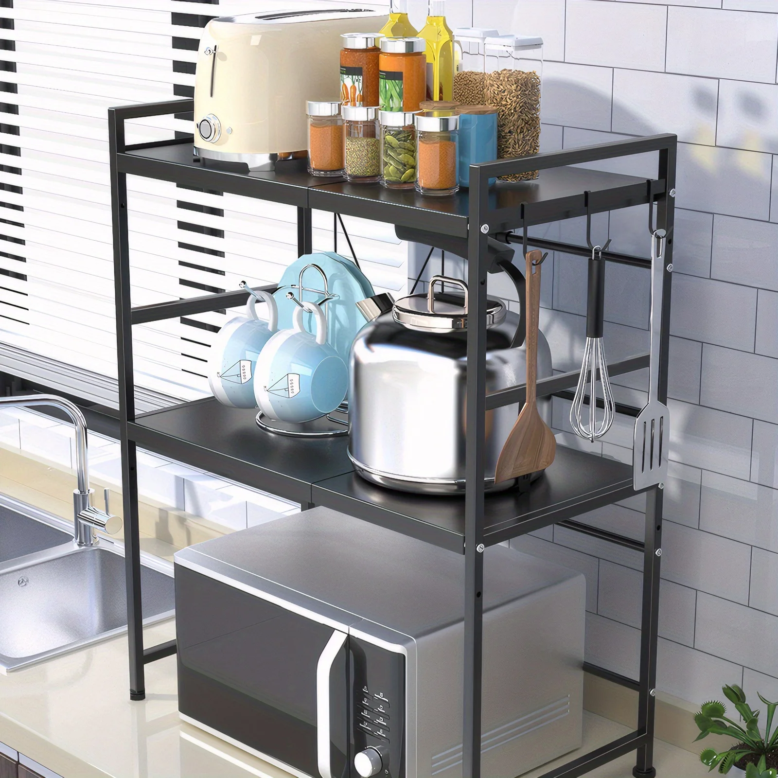 هذا المنظم ليس مجرد رف عادي، بل هو استثمار لراحة بالك ونظافة مطبخك. يسمح لك باستغلال المساحة "العمودية" فوق الميكروويف لوضع الفرن الكهربائي، آلة القهوة، أو حتى أواني التوابل.