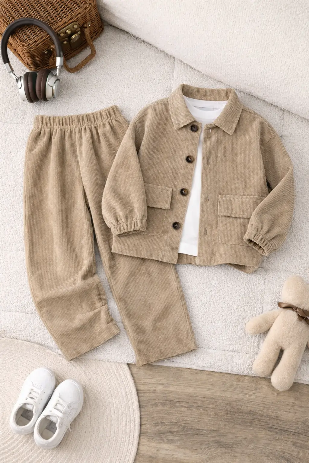 ✨ طقم أولاد أنيق بقماش مخملي – ستايل راقي للصغار