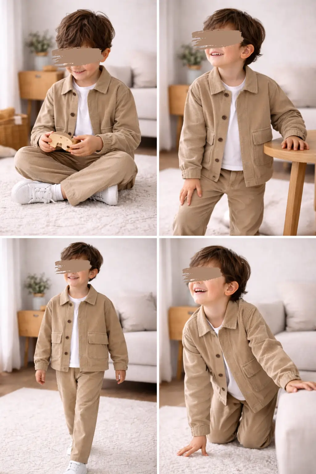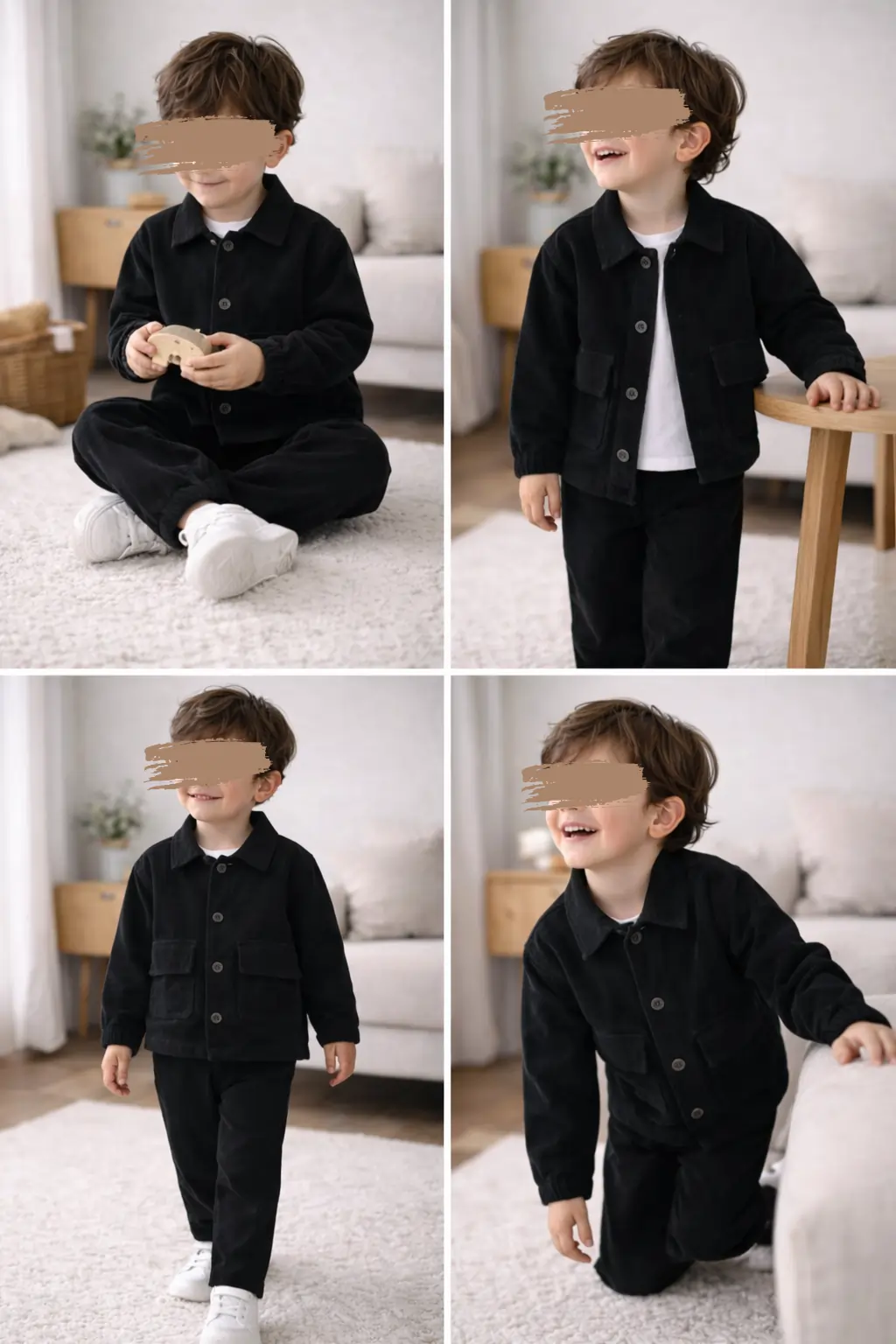 طقم عصري للأولاد يجمع بين الأناقة الهادئة والراحة اليومية،مصمّم بعناية ليمنح طفلك مظهرًا مرتبًا يشبه ستايل الكبار، دون التنازل عن راحته.
